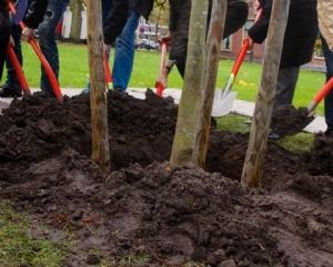 Leden van Kiwanis en medewerkers van Rabobank Assen en Noord-Drenthe hebben bomen geplant en boomspiegels gemaakt. Ze doen dit voor een nieuw te bouwen ouder- en kindcentrum van het Wilhelmina Ziekenhuis Assen.