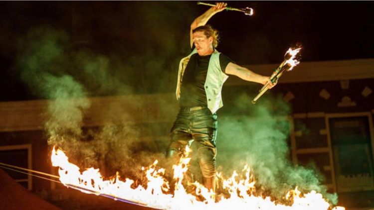 Na het openingsgedeelte met de fontein was er een act van twee vuurspuwers, die met vuur speelden. Het slot was een vijftien meter hoge steekvlam.