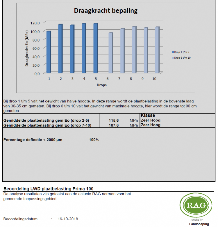 Testen in een laboratorium of van losse onderdelen van het substraat zegt niets over de overgebleven hoeveelheid poriën na praktijkverdichting
