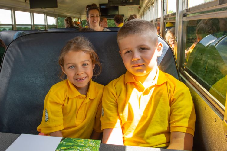 Op woensdag 3 juli was het zover, de kinderen werden in een heuse oude Amerikaanse schoolbus opgehaald op het schoolplein. Verschillende kinderen keken jaloers naar het hele gebeuren en vroegen beteuterd aan buschauffeur Toon Ebben: 'Hoe hadden we ons hiervoor kunnen inschrijven?'