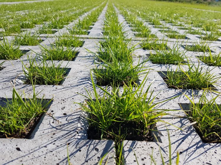 Hoe leg je een groen parkeerterrein aan met voldoende draagkracht voor zwaar verkeer, een hoog infiltrerend vermogen voor water en een mooi, blijvend groen resultaat? Dat lukt met granulaatsubstraat, een goede voedingsbodem voor het gras, en gras-betonelementen die het groeipunt van het gras beschermen. Daarin wordt het juiste grasmengsel gezaaid, dat bestand is tegen de hedendaagse weersextremen en de aangegeven belasting.