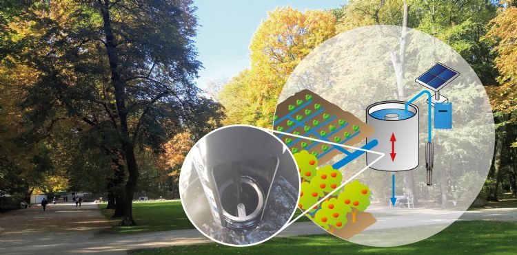 In het kader van klimaatadaptatie hebben we een innovatief IoT-device ontwikkeld voor het op peil houden van de vochtvoorziening in de bodem. Deze slimme stuwconstructie wordt geplaatst in de centrale afvoerput van de drainage en regelt het vasthouden of afvoeren van water. Voor het toevoeren van water is een pompsysteem op zonne-energie geïmplementeerd waarmee een systeem schaalbaar is tot ca. 10 hectare.