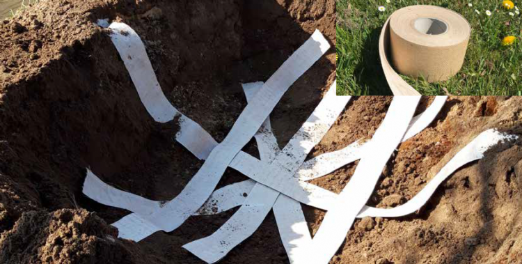 De RootBarrier Watertape is een 100% biologisch afbreekbaar tape op basis van jute, voorzien vanveen eenzijdige 100% biologisch afbreekbare coating met een gewicht van 240 g/m². Deze coating bestaat uit een superabsorber en een bindmiddel. Door invloed van water lost de superabsorber langzaam op van de tape en migreren de geldeeltjes in de omliggende grond.