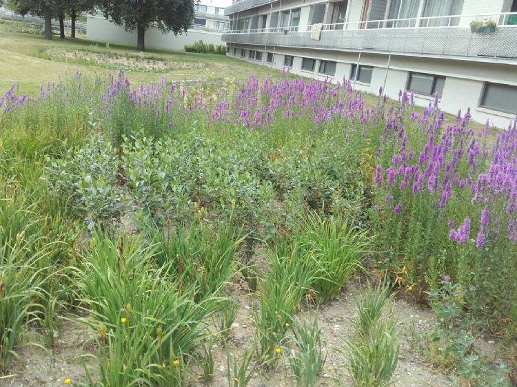 We hebben Zorgeloos Groen nu ook geschikt gemaakt voor wadi's. Speciaal voor dit soort ondergronden die de ene keer vol water staan en de andere keer kurkdroog zijn ontwikkelden we een beplantingsplan met vochtbestendige soorten onderin en droogtebestendige soorten bovenin. Het brengt meer kleur en beleving in de woonomgeving en houdt ook meer water vast dan een met gras begroeide wadi. De eerste Zorgeloos Groen-wadi's zijn dit voorjaar in Nijmegen aangelegd. We vertellen er graag meer over tijdens de Vakbeurs Openbare Ruimte.
