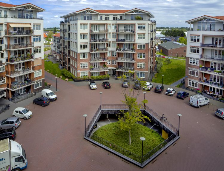 Een belangrijk onderdeel van het werk was de aanleg van een ondergrondse parkeergarage. Dat was een uitdaging, want het dak van de garage vormt ook een hofje voor de bewoners van De Bloem. Een multifunctioneel dak dus, dat niet alleen groen huisvest, maar ook toegankelijk is voor bewoners en bezoekers: te voet, op de fiets én in voertuigen – ook grote. Gelukkig kunnen de drukbestendige drainagesystemen van Nophadrain die hoge belasting makkelijk aan.