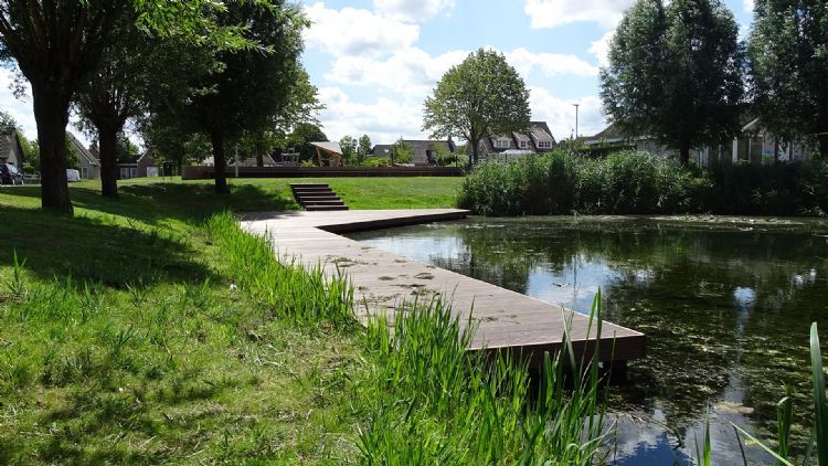 In de laatste fase van dit project is een vlonder van Azobé hardhout aangelegd bij de naastgelegen waterpartij door hoveniersbedrijf Vissergroen, zusterbedrijf van Boerplay. Op deze wijze wordt het water en het groen op een veilige manier toegankelijk gemaakt. Door gebruik van duurzaam hardhout kan hier voor lange tijd heerlijk van de natuurlijke omgeving worden genoten.