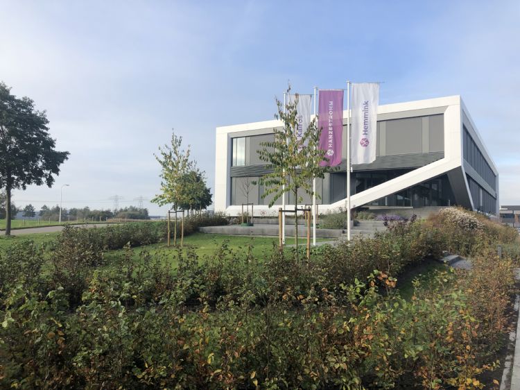 Begin 2020 is het pand in gebruik genomen. De bedrijfshal en het kantoorpand zijn duurzaam gebouwd en worden omringd door groen. De Enk mocht de tuin aanleggen: een uitnodigend geheel van bloeiende vaste planten, bomen en hagen, volgens het Zorgeloos Groen-concept. Anet Scholma van buro Mien Ruys maakte het beplantingsplan.