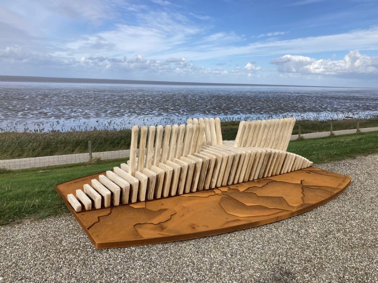De vormgeving van het bankje verwijst naar een ander kunstwerk van Van Vliet, 'De Streken' en de twee werken staan dan ook in verbinding met elkaar. "De leuningen kunnen verplaatst worden. Je kan over het wad kijken, met Terschelling op de horizon, of kijken naar het Friese landschap", aldus kunstenaar Marc van Vliet.