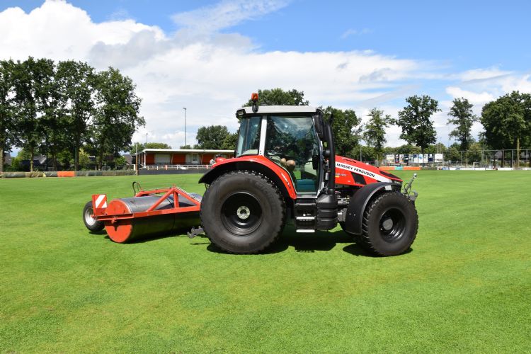 De MF S5 die Engelen Groen inzet op sportvelden. De velgen van deze tractor zijn op speciaal verzoek dofzwart gespoten door Wim van Breda.