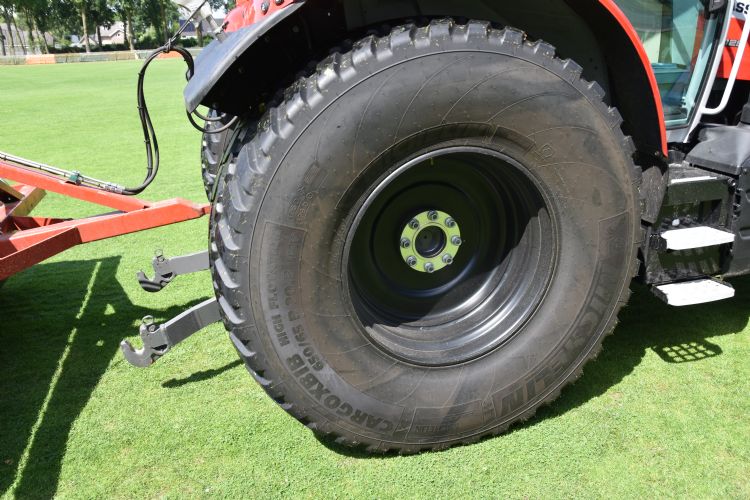 Michelin-gazonbanden voorkomen dat de bijna vijftons tractor insporingen achterlaat op de grasmat.