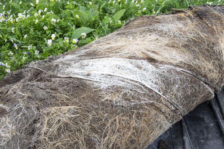 | | Zichtbare wortels aan de onderkant van de wildebloemenmat. |