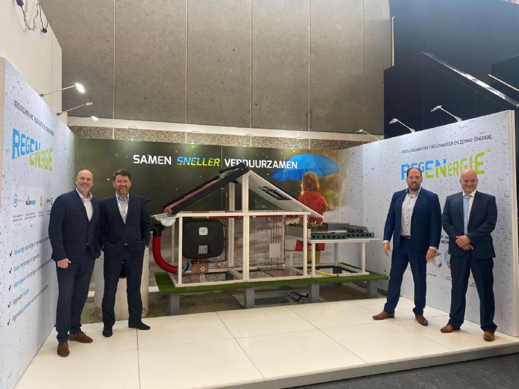 Samen hebben ze de afgelopen maanden op vijf beurzen gestaan om over Regenergie te vertellen. In oktober was Van de Bunt aanwezig op de Vakbeurs Energie in de Brabanthallen en in november op Building Holland in de Rai. Op zijn website schrijft hij: 'Wereldwijd liegen de duurzaamheidsdoelstellingen er niet om. Ze zijn op z'n minst ambitieus te noemen. Building Holland is juist daarom een accelerator (versneller, red.) van duurzame innovaties. Op 2, 3 en 4 november presenteerden we visies, innovaties en oplossingen. Zo lieten we de bouw en vastgoedsector zien hoe zij hun doorslaggevende rol in deze net zero-transitie kunnen waarmaken. Onze kracht is het samenbrengen van deeloplossingen die elk apart onderdeel zijn van de integrale oplossing.' In de bouw is sinds enkele jaren de hemelwaterverordening van kracht. 'Hierin staat de verplichting een deel van het regenwater op te slaan. Het mag niet meer allemaal afgevoerd worden naar de riolering.' Is hierdoor Regenergie geboren? 'Dat is deels waar. Ieder onderdeel van Regenergie afzonderlijk is een oplossing voor een eis die tegenwoordig aan gebouwen wordt gesteld.'