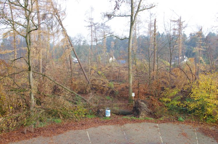 | | Bomen zijn tijdens de valwind als luciferstokjes afgebroken. |
