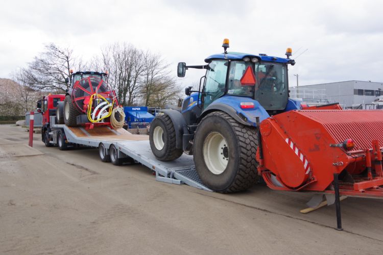 Deze oplegger is uitstekend te beladen met de meest uiteenlopende rijdende machines, zelfs die met een lage oprijhoek zoals hoogwerkers of veegmachines