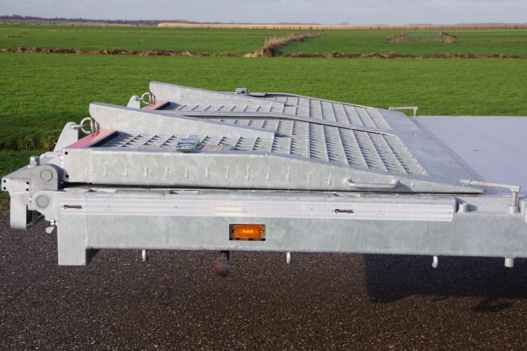 De oprij- dieplader is voorzien van luchtvering, twee acht-tons 'Veldhuizen' assen en een knikkende vloer achter het asstel. Daardoor ontstaat, in combinatie met de uitgekiende oprijkleppen een oprijhoogte van 9 procent. Daarmee is deze oplegger uitstekend te beladen met de meest uiteenlopende rijdende machines, zelfs die met een lage oprijhoek zoals hoogwerkers of veegmachines.