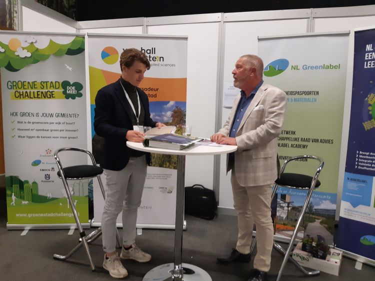 Bij de stand van NL Greenlabel informeerden de twee nieuwe medewerkers Pieter van den Braak en Ilse Tangelder bezoekers onder andere over het NL gebiedslabel.