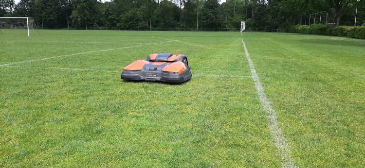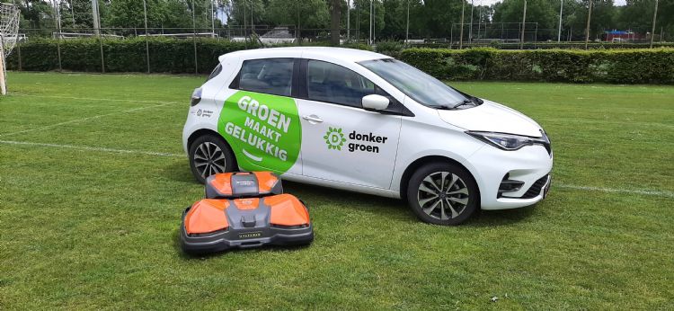 Donker Groen is tevreden over de robotmaaiers van Husqvarna: 'Het gebruiksgemak is groot, de software die Husqvarna erbij levert werkt goed en de service en het contact met Husqvarna spraken mij ook aan. Ten tijde van onze eerste aanschaf was Husqvarna een van de eersten die robotmaaiers leverden met gps, waarbij geen draad uitgezet hoeft te worden. Dat was voor ons een voorwaarde bij de aanschaf van robotmaaiers. De Ceora maait vijf velden driemaal per week. Je kunt hem meerdere voetbalvelden toekennen en daarnaast nog wat bijgebieden.'