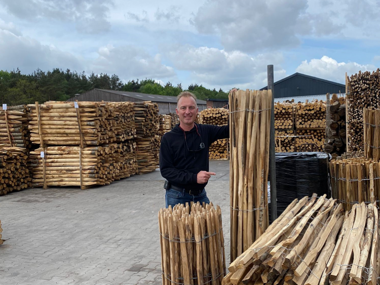 Raymond Meussen is uitvoerder bij de Vereniging Nederlands Cultuurlandschap (VNC). De organisatie werkt al lang met kastanjehout, vertelt hij. 'We willen geen verduurzaamd hout gebruiken en hebben daarom gekozen voor palen van tamme kastanje. Ik stuur de medewerkers aan die bij ons in het veld de projecten uitvoeren. Het gaat dan vooral om de aanleg van kleine landschapselementen, zoals hagen, houtwallen, singels en solitaire bomen. Daar komt meestal een raster omheen, met puntdraad, paardenlint of schapengaas. We hebben voor tamme kastanje gekozen vanwege de natuurlijke duurzaamheid. Acacia of gekloofd eiken zou ook kunnen, maar voorlopig houden we het hierbij. Bij gekloofd eiken heb je het risico dat er wat meer spint in kan zitten en het verrot relatief snel.' Jaarlijks neemt de VNC duizenden palen af bij WTC. Het precieze aantal hangt af van de projecten waaraan gewerkt wordt. In 2022 ging het om een aantal grote projecten. 'In Wijchen hebben we een groot dassencompensatiegebied ingericht voor een projectontwikkelaar. Die bouwde een woonwijk; de dassen moesten verhuizen naar een nieuw gebied dat de ontwikkelaar moest inrichten. Daar hebben we een aantal kilometers raster geplaatst om de dassen binnen te houden en landschapselementen te beschermen. Voor het Oud Burgeren Gasthuis in Nijmegen, dat veel grond verpacht, hebben we vier kilometer struweelhaag aangeplant. Dat gebied is ook helemaal door ons uitgerasterd. Nog een voorbeeld: in Limburg hebben we kilometers haag- en houtwal aangelegd voor biodiversiteitsherstelmaatregelen, ook weer met afrastering. Vorig jaar was een uitzonderlijk jaar, wat dat betreft. Dat deden we allemaal met hout van WTC, want dat is kwalitatief gewoon goed.'