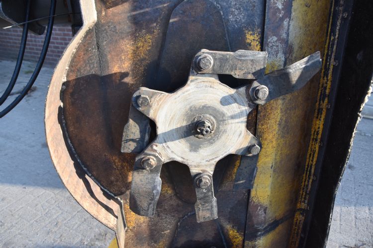 De aandrijving van de vier rotoren gebeurt volledig mechanisch, met aftakassen. Hierover zegt Beeftink: ‘Voor mij betekent dat een veel geringer risico op storingen. Er zijn ook systemen waarbij een aparte hydromotor één rotor aandrijft. Simpel geredeneerd heb je dan veel meer onderdelen waaraan storingen kunnen optreden. Hier is sprake van één grotere, centrale hydromotor die op het maaidek is gemonteerd. Deze hydromotor wordt aangedreven door de hydrauliek van mijn kraan. Voor de aandrijving van de vier rotoren met circa 2.500 rpm is bij deze versie een minimale olietoevoer van 73 liter per minuut nodig. Optimaal is dit 94 liter per minuut. De hydrauliek van mijn graafmachine heeft hierbij overcapaciteit om het maaidek optimaal te laten werken.’