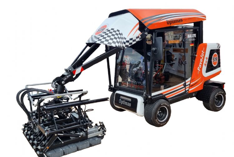 | | De elektrische Optimas S19E kan per dag tot 1.000 m² bestrating leggen. |