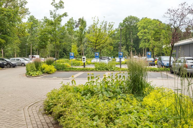 | | Traditionelere GreentoColour met grotere plantvakken bij de parkeerplaatsen |