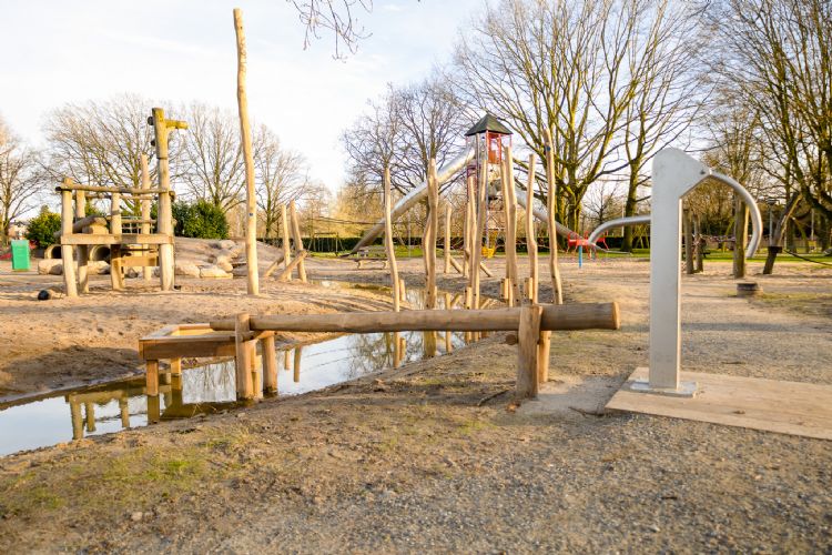 Bij de aanleg van de speeltuin zijn zoveel mogelijk materialen hergebruikt. Zo zijn enkele bestaande water- en zandtoestellen en een wip opnieuw geïntegreerd in het ontwerp. De speeltuin is ontworpen met het oog op langdurig en veilig plezier, ongeacht het seizoen. Dankzij de duurzame materialen en stevige constructies kan de speeltuin het hele jaar door intensief gebruikt worden, terwijl kinderen zich vermaken met het verfrissende waterspel en andere avontuurlijke activiteiten. Ouders kunnen intussen genieten van ontspannen momenten op het terras, terwijl ze een oogje in het zeil houden.