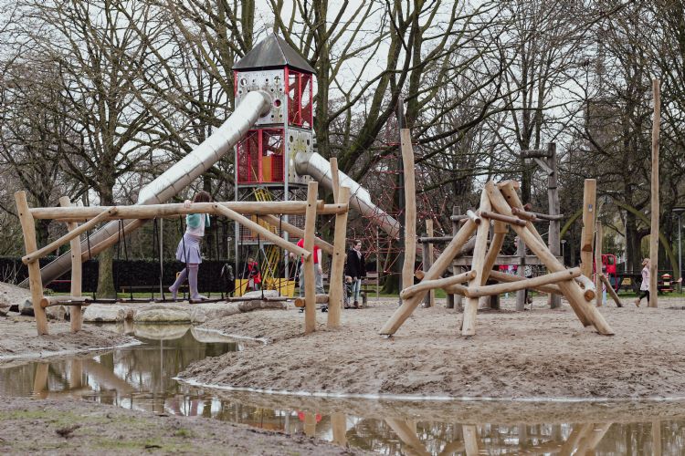 In Roosendaal zijn verschillende toestellen uit de oude speelplek van Speeltuin Vrouwenhof hergebruikt in een totaal nieuw ontwerp.