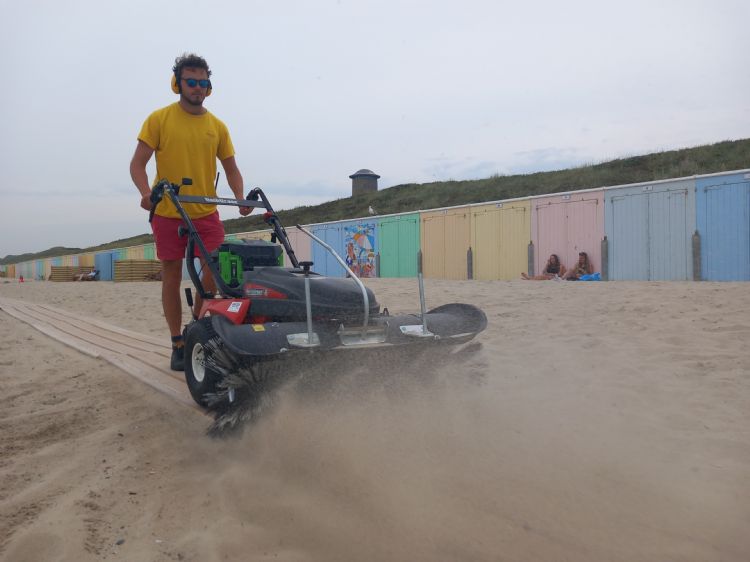 Met wat literaire fantasie zou je een parallel kunnen trekken met Don Quichot, de man van La Mancha die tegen windmolens vocht. Of, dichter bij huis, de Waterdrager van Boudewijn de Groot. Die droeg immers water naar de zee, een klus die minstens zo vergeefs lijkt als het schoonvegen van het strand. Toch is dat laatste precies waar SSV zich mee bezighoudt, of dan tenminste met de paden over dat strand. Daarvoor gebruiken ze elektrische veegmachines van het merk Tielbürger, die in Nederland worden geïmporteerd door D.B. van der Horst in het Gelderse Loo, nabij Duiven. Precies 235 kilometer verder, in Westkapelle, is Louis de Korte met zijn bedrijf Kortech dealer van Tielbürger en hij levert de veegmachine aan de stichting in zijn woonplaats. De Korte onderkent de eindeloosheid van het werk. 'Het is nooit af, maar het moet gebeuren. We willen dat iedereen van het strand kan genieten. Dus ook rolstoelgebruikers, mensen die anderszins slecht ter been zijn of ouders die hun kroost in een kinderwagen meenemen. Zonder die houten looppaden kunnen zij het strand veel minder makkelijk of bijna niet op.'