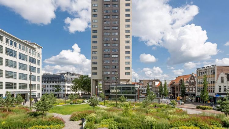 | | Het Clausplein in Eindhoven is omgevormd tot een groene, fijne en duurzame plek. |