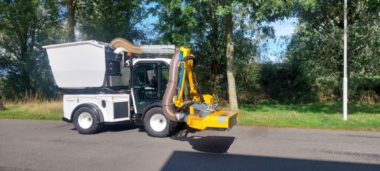 Combinatie met maaiarm, heggenknipper en zuiginstallatie op tournee