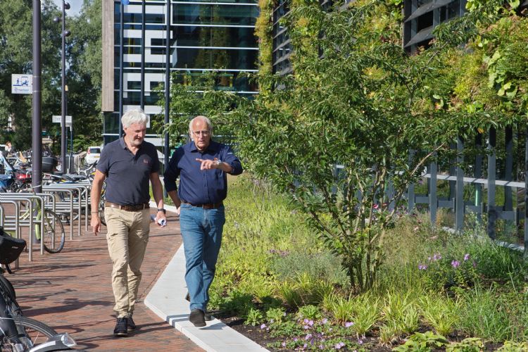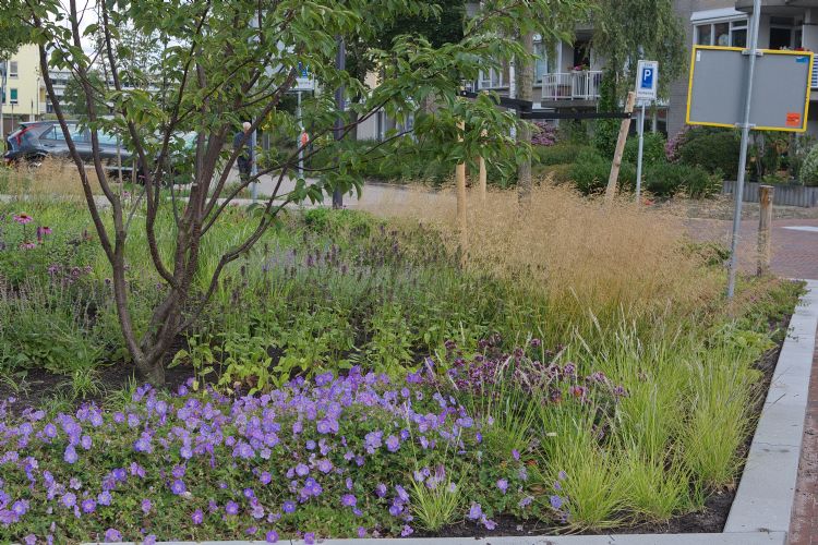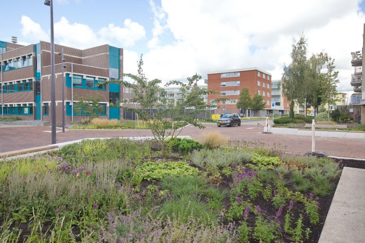 Bij het ingenieursbureau van de gemeente Dijk en Waard wordt het thema klimaatadaptatie steevast meegenomen in projecten. Zwart: 'Wij vinden dat we een belangrijke rol spelen bij het opvangen van de gevolgen van klimaatverandering. Waar mogelijk kiezen we hierbij voor natuurlijke oplossingen. De inrichting van het Stadshart is hier een fraai voorbeeld van. In het project zijn bijvoorbeeld wadi's aangelegd, regentuinen die het hemelwater van de weg opvangen en in de bermen zijn kruidenmengsels gezaaid.'