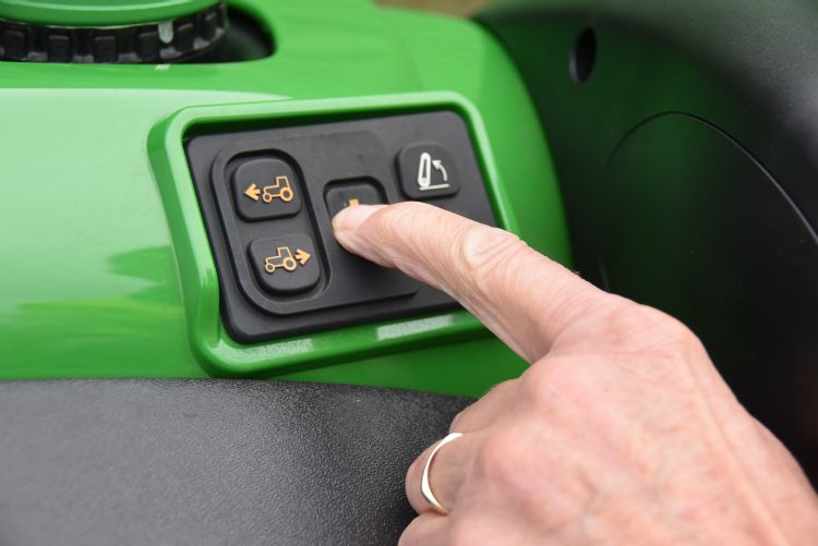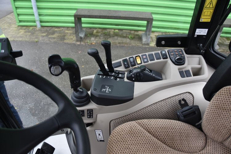 Twee zaken maken het werken met deze tractor nog aangenamer voor de chauffeur. Standard Hitch Assist is hier één van. Deze zorgt voor een sneller en veiliger gebruik van de driepuntshefinrichting bij het aankoppelen van werktuigen achter de tractor. Deze mogelijkheid bedien je vanaf het linker-achterspatbord. Vanaf hetzelfde bedieningspaneel kun je de tractor heel langzaam iets voor- of achteruit laten rijden. Zo kun je deze John Deere bij aanbouw van een werktuig gemakkelijk, veilig en zonder extra krachtsinspanningen in de juiste positie brengen. Je hoeft hiervoor niet van de tractor af en weer op te stappen. Onder de naam LoadMatch beschikt de John Deere 4066R over nog een prettige eigenschap. LoadMatch voorkomt het afslaan van de motor door automatisch het motortoerental aan te passen aan de motorbelasting. John Deere biedt overigens bij de transmissie twee opties. Standaard gaat het om de zogenoemde PowrReverser transmission (PRT) met twaalf versnellingen voor- en achteruit. Optioneel is de uitvoering zoals de gemeente Medemblik die koos: hydrostatische transmissie (HST), met drie 'versnellingen' vooruit en drie achteruit.
