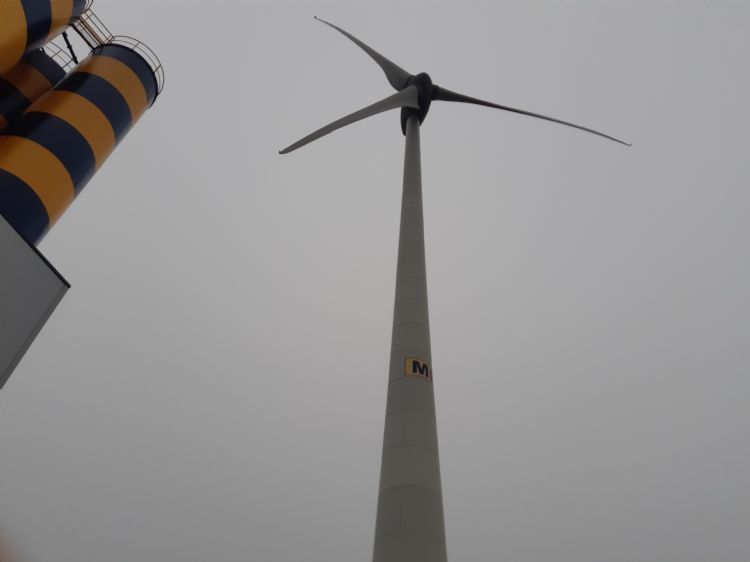 De windmolen waarmee het grootste deel van de energie voor de fabriek wordt opgewekt