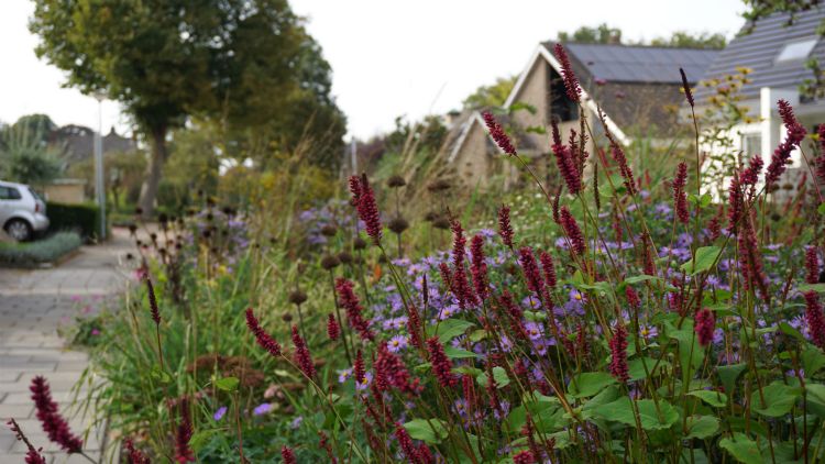 Nog een voordeel van het concept dat Sikking niet onbesproken laat: in de straten staat er het hele jaar door iets in bloei. 'Samen met beheerder idverde en de landschapsarchitect hebben we op basis van de plannen van Lageschaar een mix van planten samengesteld die perfect past bij de omgeving van Aalten. Dat er jaarrond sierwaarde is, wordt met gejuich ontvangen door onze inwoners. Voorheen werden ze geconfronteerd met een ietwat rommelig beeld, wat enorm contrasteert met de huidige situatie. Met het Prairie Garden-concept heb je ook totaal geen last van onkruid. Veel bloeiende planten en weinig onderhoud, dat is in onze ogen een win-winsituatie.'