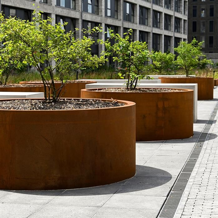 Producten: Polderdak, vaste planten, cortenstaal, beton, Bamboo Xtreme, douglasbalk-meubel