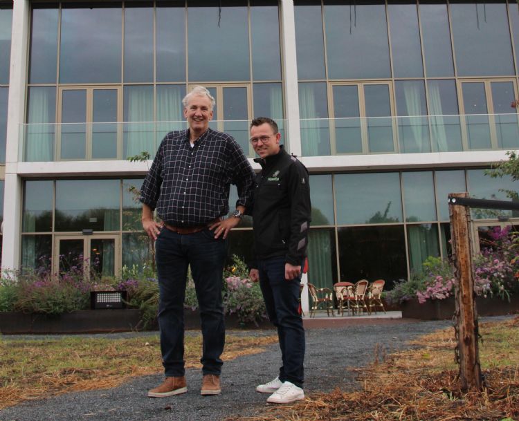 Edgar Bolwerk (l.) en Gijsbert Arends voor het restaurant aan de tuinzijde van Van der Valk Hotel Eindhoven-Best