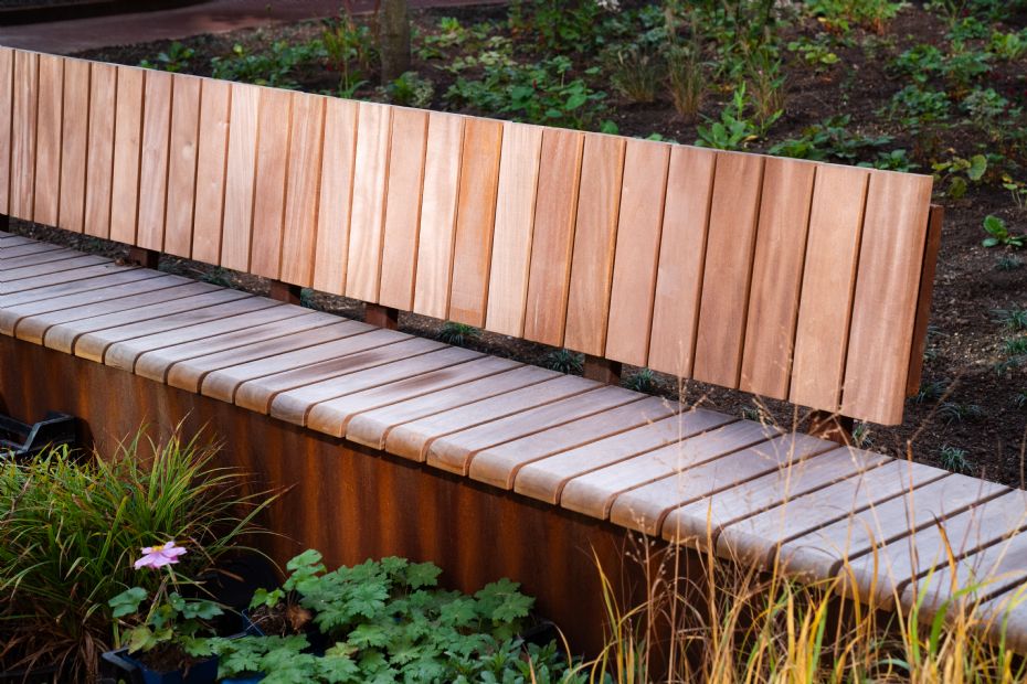 | | Het cortenstaal van FURNS is op allerlei manieren door Du Pré ingezet. |
