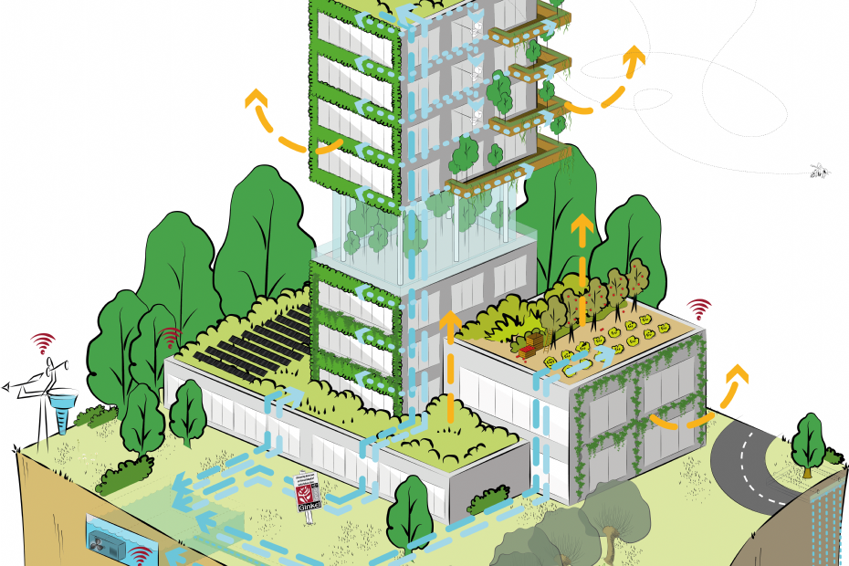 Hergebruik van hemelwater is the key. Groencollectief Nederland presenteert twee systemen met een ondergrondse modulaire waterberging: de Groene Gevel en Boomtak.