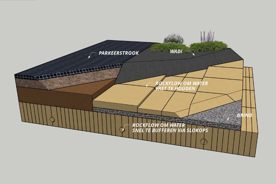 Wateroverlast bij regen, uitdroging als er geen regen valt ... we hebben er inmiddels allemaal wel ervaring mee. Maar er is een oplossing, en die bestaat bovendien uit volledig circulaire steenwolelementen. In dit project worden de functies - water infiltreren en water vasthouden - voor het eerst in één systeem gecombineerd.