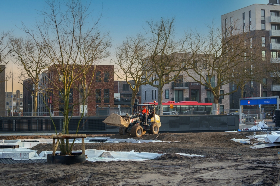 Het ontwerpproces moest tot in de kleinste details worden uitgewerkt. 'Denk bijvoorbeeld aan de plaatsing van de riolering en putafdekkingen.' Daarbij bracht de uitvoering, naast de overlast van regen, de nodige logistieke uitdagingen met zich mee. 'We werkten in een drukke omgeving die zo min mogelijk hinder mocht ondervinden van onze werkzaamheden. Zo moest de nabijgelegen bushalte altijd bereikbaar blijven voor bezoekers. Dat vergde een zorgvuldige planning en omgevingsmanagement.'