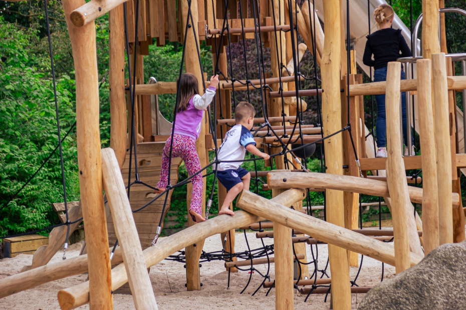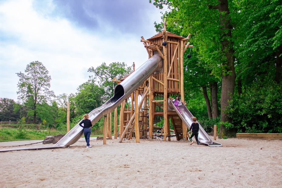 | | Een plek om van laag naar hoog te klimmen en te klauteren, met als beloning van de hoge glijbaan glijden als het je is gelukt helemaal bovenin te komen. |