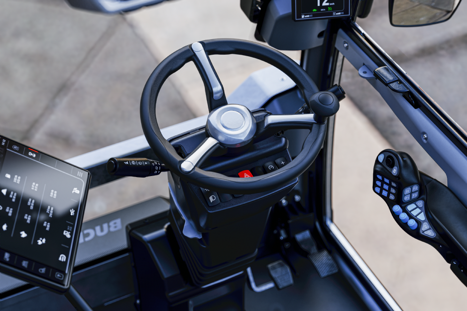 'De veegmachines van Bucher onderscheiden zich vooral door de Smart-Con-armbediening', aldus Calis. 'Deze ergonomische bediening, in combinatie met het CSense-touchscreen, maakt het mogelijk om alle werkfuncties met één hand te bedienen.' De Smart-Con-bediening is ontworpen met het oog op intuïtief gebruik, waardoor machinisten eenvoudig kunnen overstappen tussen verschillende veegmachines en direct vertrouwd zijn met de bediening. Het intuïtieve touchscreen biedt uitgebreide functies, een centraal overzicht van alle instellingen en een visueel diagnosesysteem. De weergegeven configuratie kan door de bestuurder individueel worden aangepast.