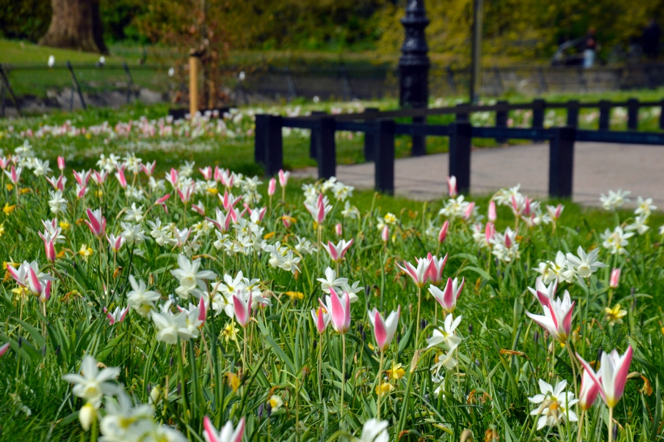 De bloembollen geven een prachtig beeld, dat perfect past bij de statige en groene omgeving