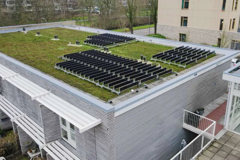 In Amstelveen is een bijzonder project afgerond: een appartementencomplex aan de Maccabiadelaan kreeg als eerste in Nederland een groendak met verticale zonnepanelen. Wallaard Groenvoorziening voerde de aanleg uit in opdracht van de Vereniging van Eigenaren (VVE), die het complex wilde verduurzamen en het wooncomfort verbeteren. De gemeente Amstelveen steunde het project met subsidie.