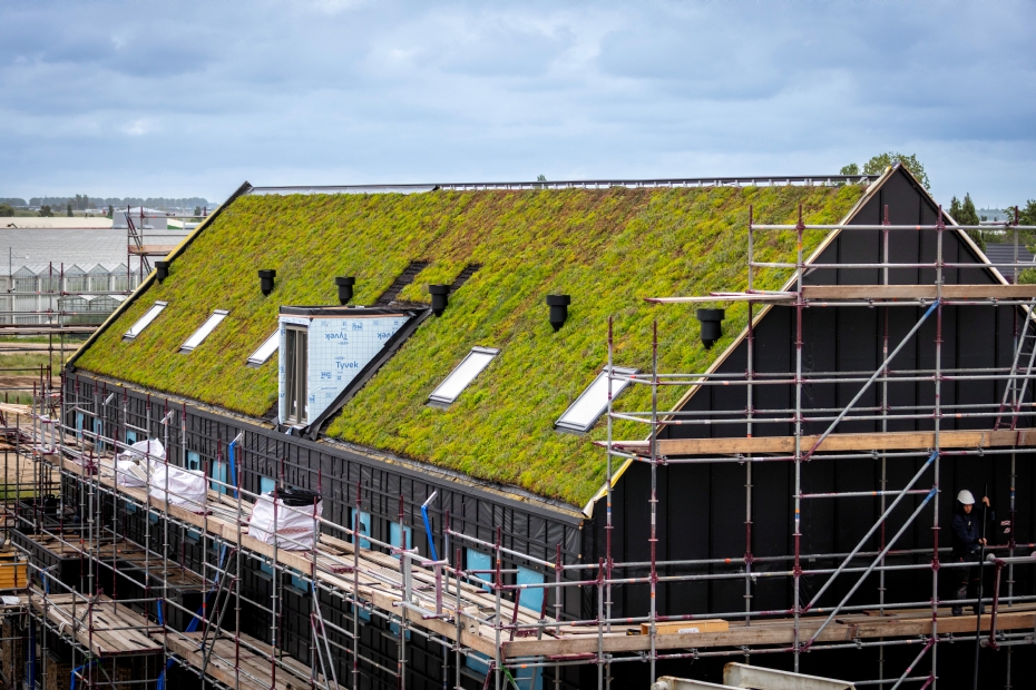 | De groendaken op het eerste huizenblok van het project De Swanla-driehoek in Zevenhuizen (Zuid-Holland) |