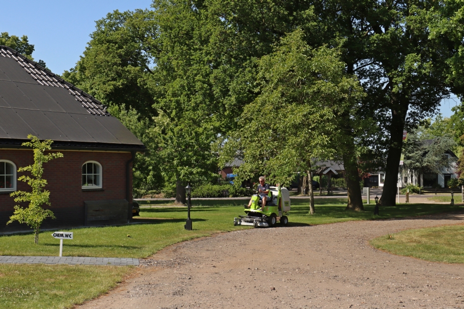 Smit wordt in zijn oordeel bevestigd door de reacties van zijn campinggasten. 'Mensen zeggen vaak: " Wat heb je toch mooi gras", en dat doet me plezier. Het is voor mij ook een soort erezaak. Het is niet zo eenvoudig om een mooi gazon te houden, zeker niet als het intensief gebruikt wordt. Maar ik heb er aardigheid in om dat zo goed mogelijk te doen.' Daarvan profiteren ook de klanten van Smits andere bedrijf, STS Markelo. 'Met mijn technische support werk ik onder andere voor waterzuiveringen en drinkwaterstations. Daarvoor heb ik pompen en leidingen aangelegd, onder andere bij de Afsluitdijk. Bij andere projecten werk ik bijvoorbeeld aan warmtewisselaars en gasturbines. Het ligt voor klanten misschien niet zo voor de hand dat diezelfde kerel van datzelfde bedrijf ook even het gras maait, maar ik ben een techneut en een perfectionist. Dat maaien doe ik dus met dezelfde toewijding als al mijn andere werk. Ik ben nu eenmaal een vakman.'