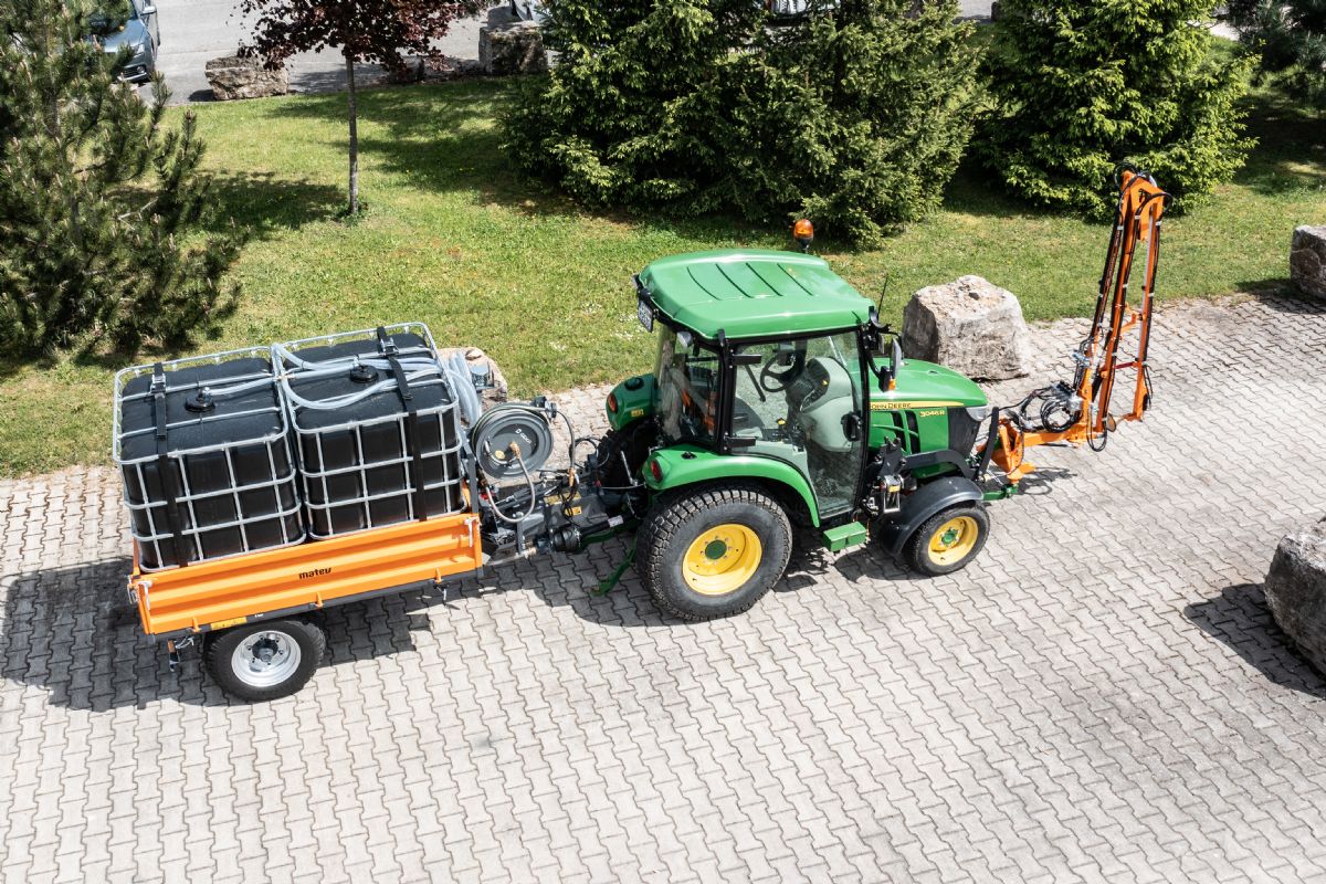 Het bewateringssysteem WTS-TS 2000 is ontworpen voor gebruik met de compacte Matev Trailer TRL-3D 20. Dankzij een breedte van slechts 140 cm is het systeem uitermate geschikt voor smalle routes zoals fietspaden en stadsparken. De unit bevat twee IBC-tanks en kan water innemen via een brandkraan, tankopening of door aanzuiging. De gebruiker kan kiezen uit verschillende manieren om water af te geven, waardoor het systeem makkelijk inzetbaar is voor uiteenlopende situaties. Dit maakt het een flexibele oplossing voor gemeentes en aannemers die op zoek zijn naar praktische en zelfstandige bewateringsoplossingen.
