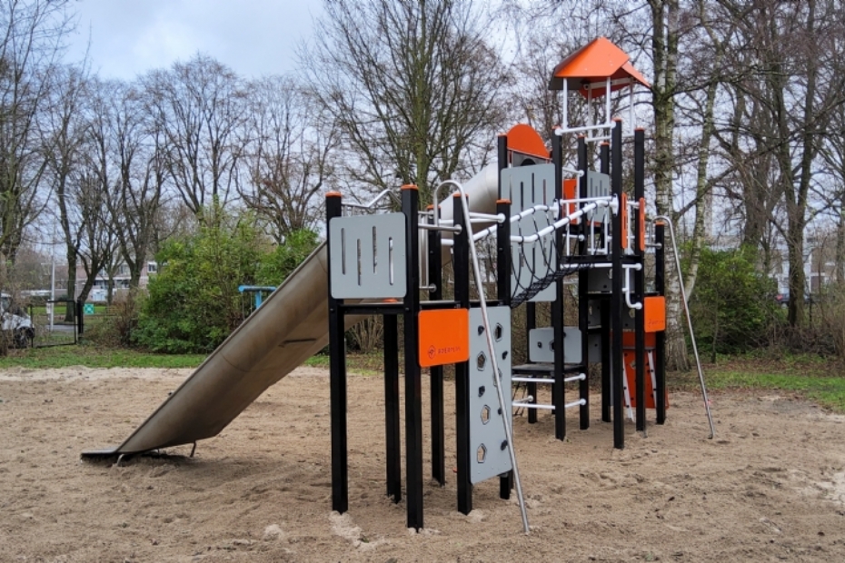 Door de glijbanen te hergebruiken kon het budget gebruikt worden voor een speeltoestel met meer speelwaarden.