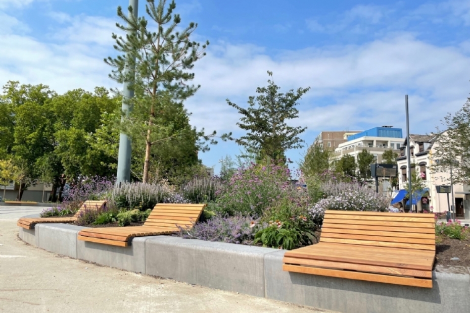 | | plantvakken met parkbanden en kleurrijke beplanting |