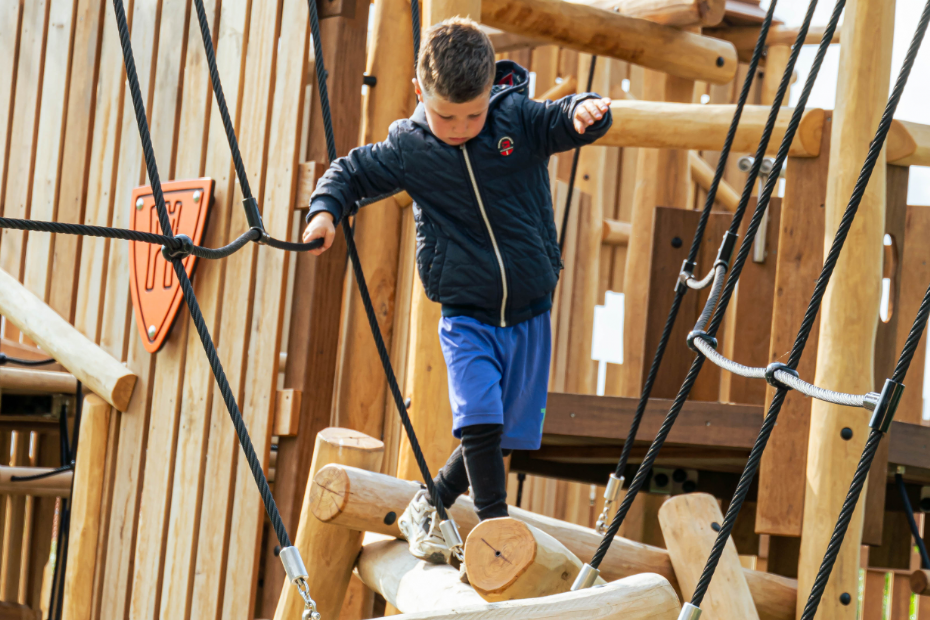 De vernieuwde burcht staat nu centraal opgesteld en trekt meteen de aandacht. Dankzij extra klim- en klautermogelijkheden is er volop uitdaging voor oudere kinderen. Onder de burcht loopt een verhard pad, waardoor ook kinderen met een beperking volledig kunnen meespelen. Langs dit pad zijn inclusieve speelwaarden toegevoegd, zoals: • muziekinstrumenten • spreekbuizen • een poppentheater • een interactief spellenpaneel • een kleine arena voor ontmoeting, theater en dans